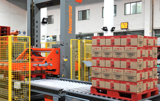 用于啤酒食品飲料行業(yè)、化工行業(yè)等,對(duì)各類(lèi)瓶罐箱包進(jìn)行碼垛。生產(chǎn)能力大,適應(yīng)多種垛板及箱型,調(diào)整方便。生產(chǎn)線變換僅需修改軟件程序,垛型一鍵切換、變更產(chǎn)品操作方便。適應(yīng)于紙箱和熱收縮膜包裝的碼垛。